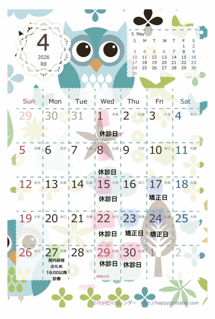 🟥毎週水曜日と祝日は休診日です。